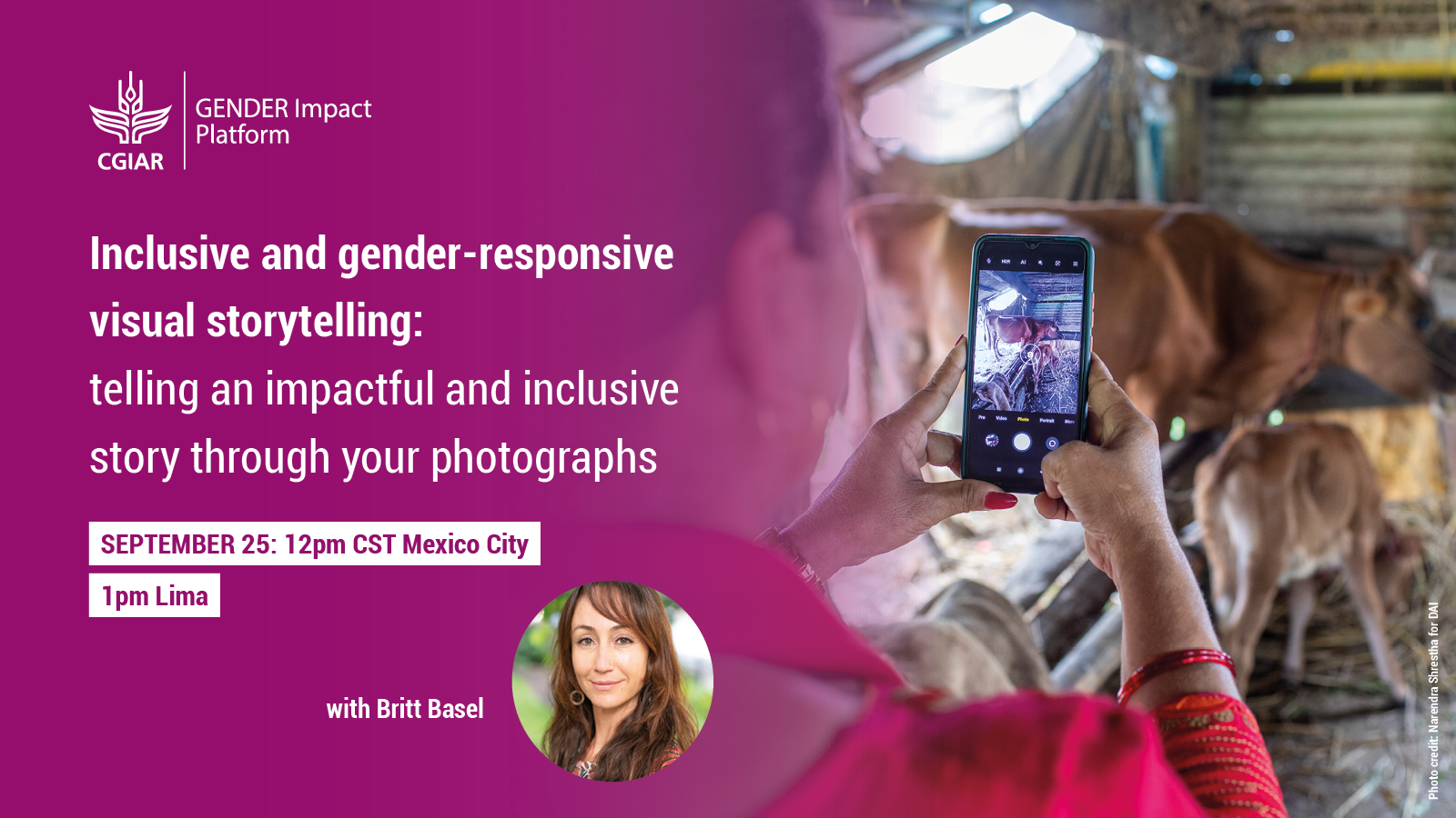 Telling an impactful and inclusive story through your photographs: A workshop for communication specialists and journalists. The CGIAR GENDER Impact Platform will host this photography webinar offered by Britt Basel