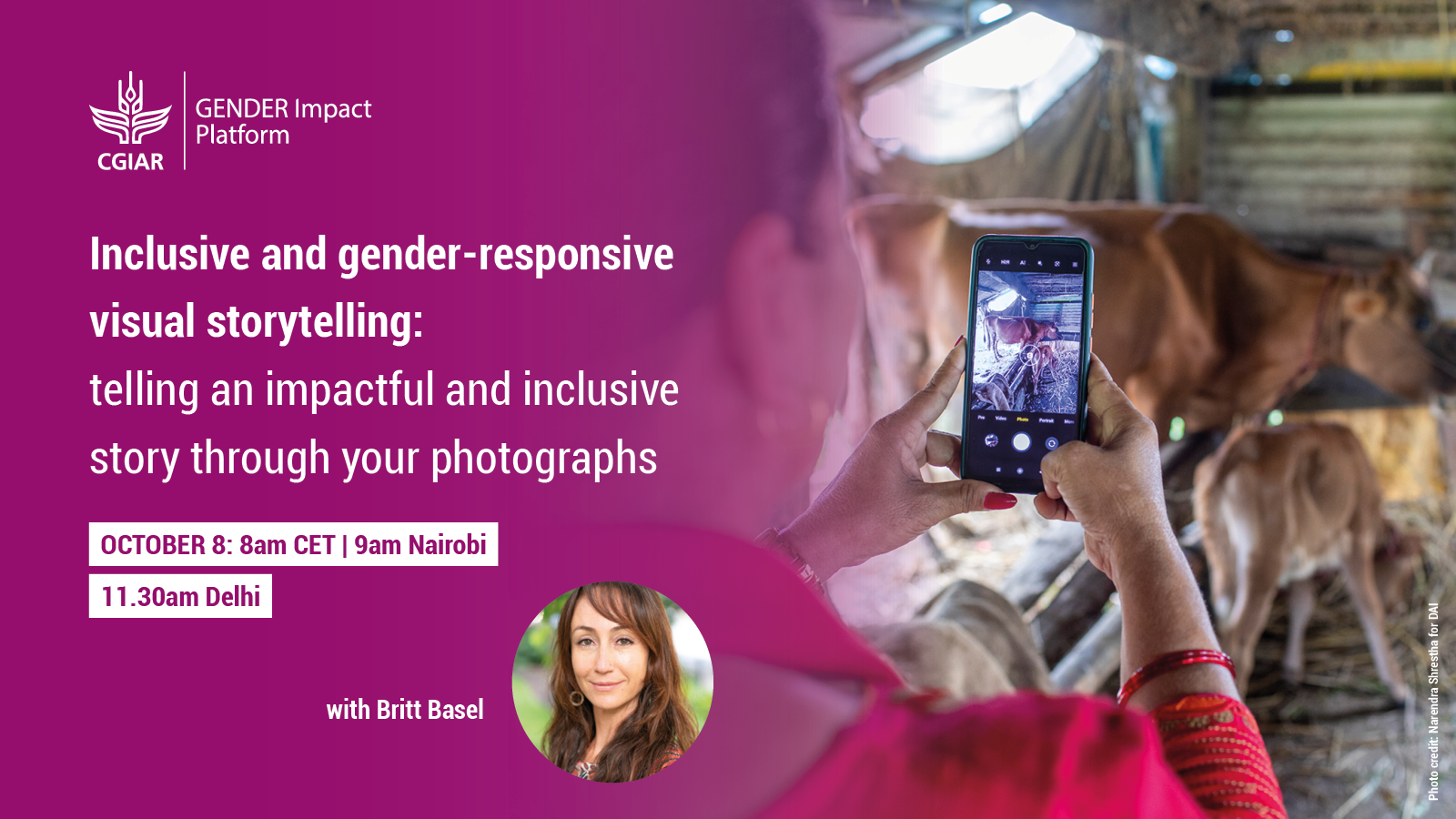 The CGIAR GENDER Impact Platform invites you to this webinar with Britt Basel, a seasoned photographer bringing stories to life through the lens for publications like National Geographic, Traveller India and The Washington Post. Register and learn how to tell inclusive stories through your photos in the food systems.