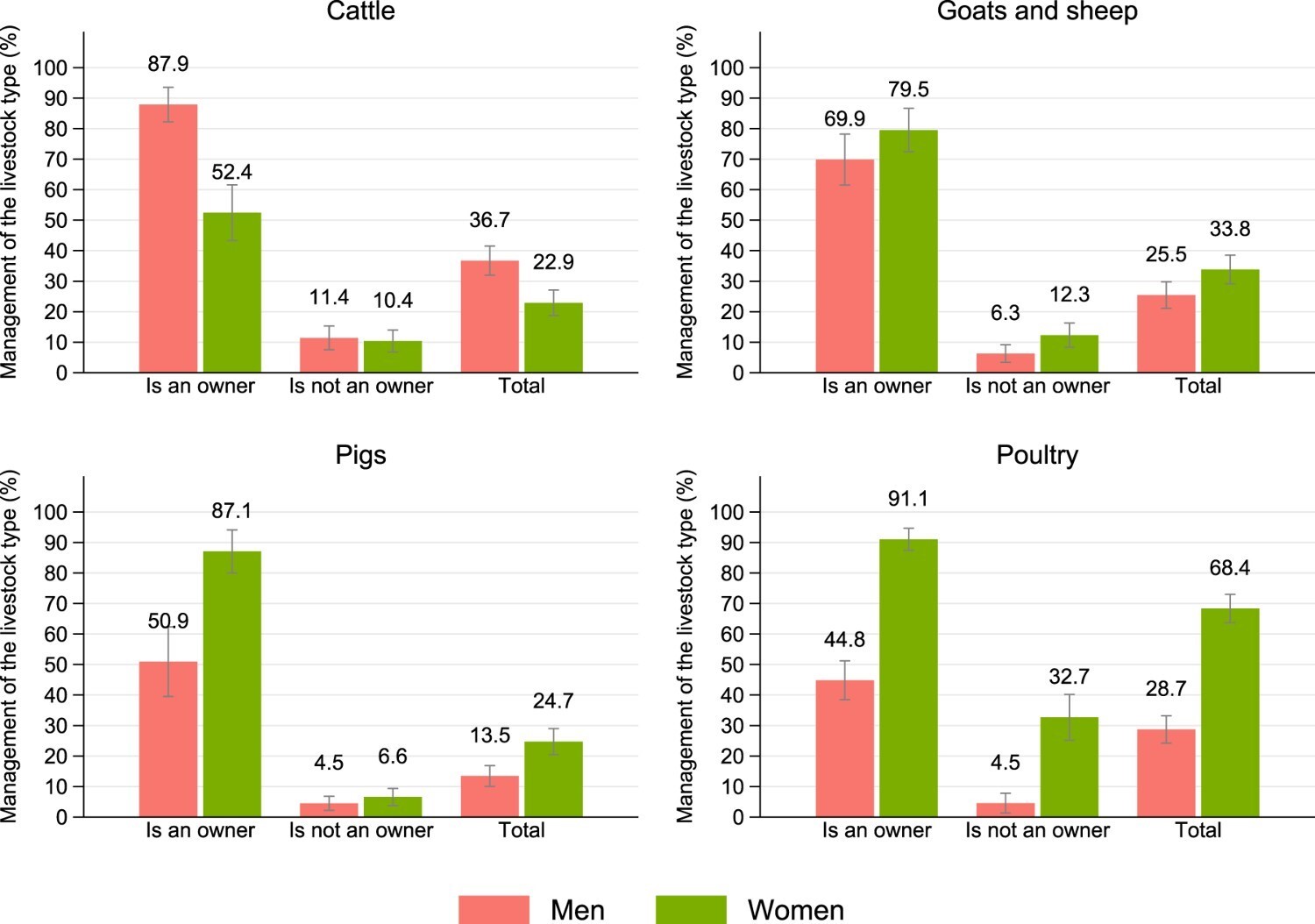 Figure 1. Livestock management by gender, ownership status and livestock type